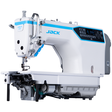 JACK A7. Lineare con movimento della griffa digitale, rilevamento spessore tessuto, regolazione digitale del punto, fermatura digitale silenziosa e motivi di cucitura. Apridischi tensione elettrici, bussola barra d’ago allungata. Rasafilo automatico, alzapiedino, fermatura digitale e taglio del filo corto 3,5mm. Bacinella olio sigillata e braccio da 260mm.