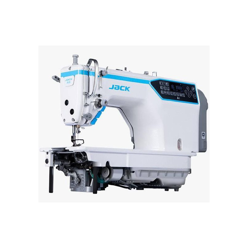 Jack A4E Lineare computerizzata con controllo digitale della lunghezza del punto controllata da motorino passo passo, con rasafilo automatico, alzapiedino, fermatura digitale silenziosa e taglio del filo corto. Bacinella olio staccata.