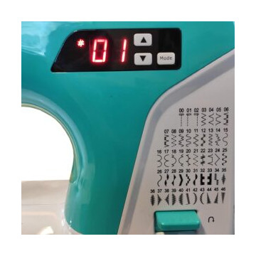 Punti: 50 punti; Asola in quattro passaggi; Facile selezione del punto con tasti; Posizione su e giù dell’ago; Funzione ago doppio con blocco sicurezza a 3mm; Spegnimento automatico di sicurezza; blocco volantino automatico per avvolgimento spolina; Maniglia pieghevole; Display a LED; Luce LED a lunga durata; Cucitura a braccio libero; Barra del pressore fissa; Tipo di piedino a scatto per una facile sostituzione; Tasto punto indietro; Infilatore automatico dell’ago; Contenitore accessori integrato nel braccio libero; Crochet oscillante; Sistema di caricamento verticale della spolina; Pedale elettronico; Porta-spola a 2 pezzi; Taglia-filo a sinistra del coperchio della lampada; Funzione di allarme automatico malfunzionamento.